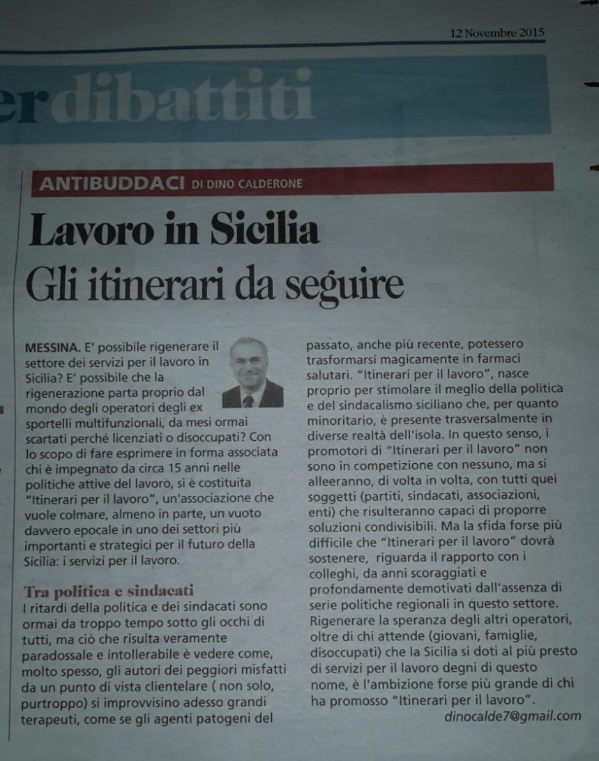 Dentro le riforme nazionali e le distruzioni siciliane vogliamo costruire proposte e raggiungere obiettivi, per tappe, per i lavoratori, con gli operatori delle politiche attive del lavoro, dall'orientamento alla formazione, a tutte le attività previste dalle norme, con particolare riferimento al D. Lgs. 150/2015, ai servizi per il lavoro privati.